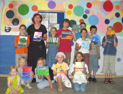 Ursula Grothen zeigte den Kindern nicht nur, wie man mit Farben und Formen umgehen kann, sie erklärte auch, wie die einzelnen Maltechniken im Laufe der Zeit entstanden und wie sie immer weiter verfeinert wurden.