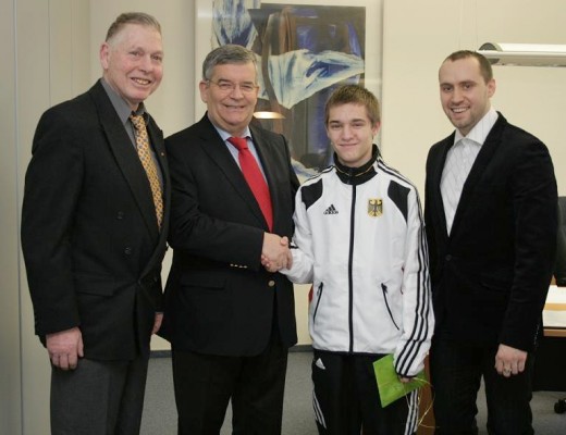 Daher war es für Landrat Hagen Jobi eine Ehre, Dennis Schewtschenko, seinen Trainer Nika Tsurtsumia und Friedhelm Meisen im Kreishaus zu begrüßen und ihm die mentale Unterstützung des Oberbergischen Kreises mit auf den Weg zu geben. "Vorbilder sind wichtiger denn je für die Gesellschaft", gab Landrat Hagen Jobi dem Sportler mit auf den Weg. "Und Vorbilder erfordern starke Persönlichkeiten." (red.-08.02.2011 20:52)