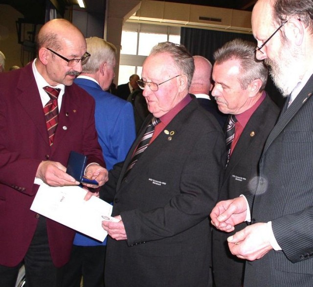 Morsbach - Bei der zentralen Sängerehrung des Sängerkreises Oberbergisch Land in Bielstein wurden jetzt auch zwei verdiente Sänger des MGV „Concordia“ Morsbach mit Ehrennadeln ausgezeichnet. Willi Schuh aus Rhein singt nun schon 65 Jahre in der „Concordia“. Heinz Van der Vorst erhielt die goldene Ehrennadel für 40 Jahre aktives Singen im Chor.