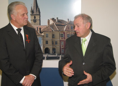 Beckstein nahm sich trotz der Sicherheitskonferenz eine Stunde Zeit, um den Wiehler für seine jahrzehntelangen Verdienste um die Landsmannschaft der Siebenbürger Sachsen auszuzeichnen.