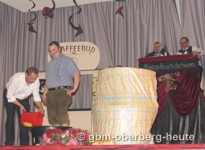 Auch in eine Wasserbütt stieg Michael Deipenbrock bei seinem Auftritt. Dies jedoch nur zur Veranschaulichung seiner Musterung für die Marine. Dafür wohl zu „schwergewichtig“, folgte Deipenbrock einem ausgetüftelten Diätplan mit jeder Menge Körperertüchtigung -vor allem beim Weglaufen vor allzu warmen Händen - für den er kräftige Lachsalven kassierte.