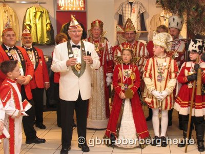 Heute hat die WKG, deren Schlachtruf seit 55 Jahren „Waldbröl pass opp“ lautet - „Waldbröl Alaaf wollte“ sich einfach nicht einbürgern - 360 Mitglieder. Etliche davon begleiteten die Dreigestirne samt Hofstaat heute in den von der Gaststätte zum Ladenlokal umgebauten Teil des Bekleidungsgeschäfts „Mast“, wo vor 60 Jahren zum ersten Mal Waldbröler Karneval gefeiert wurde.