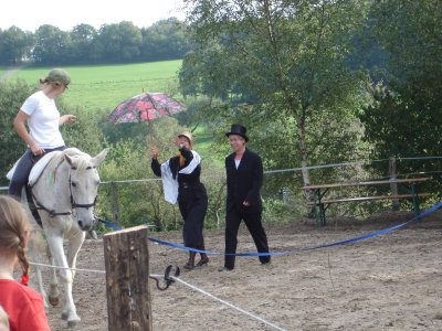 Die Gruppe "Dienstagnachmittag" turnte auf dem Pferd "Chilli" zur Musik von 99 Luftballons. Kathleen Linke und Anna Schneider imitierten James Bond in originellen Kostümen. Auf Haflinger Stute "Annika" zeigte Lina Himmrich eine ausgezeichnete Kür.