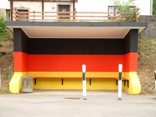 Ein neuer Anstrich war für das durch Schmierereien verunstaltete Bushäuschen ohnehin fällig. Und so entschloss sich die Dorfgemeinschaft Linden e.V. kurzerhand die Wartestelle in unsere Landesfarben zu tauchen und siehe da: Nicht nur die vom WM-Fieber befallenen  Autofahrer gehen von Gas und staunen. Wir auch. Diese geniale Idee zur Geschwindigkeitsbegrenzung und die professionelle Ausführung haben ein ganz dickes Lob verdient.