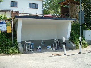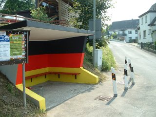 Der Anstrich sowie die anfallenden Malerarbeiten wurden der Dorfgemeinschaft Linden e. V.  durch eine Sachspende der Malerfachgeschäft Wirths aus Wiehl ermöglicht. Nach der WM soll das Bushäuschen übrigens umgestaltet werden. Wir sind gespannt. (oh-16.06.2006 20:45)