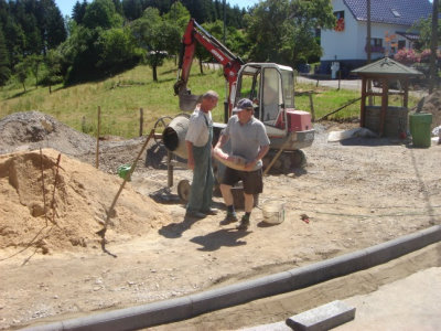 Mußestunden am Dorfbrunnen sind in Schönenbach bald keine Traumvorstellung mehr.  Noch in dieser Woche sollen die Hauptarbeiten abgeschlossen werden. Bisher wurden Bordsteine gesetzt, Rasengittersteine verlegt und Grünflachen neu angelegt. In aller Kürze hat Schönenbach wieder einen schönen Platz als Treffpunkt. An einer Schautafel, können sich Wanderer über die Geschichte des Ortes und den bis Mitte der 60er Jahre genutzten Brunnen informieren. (oh-20.07.2006 13:03)
