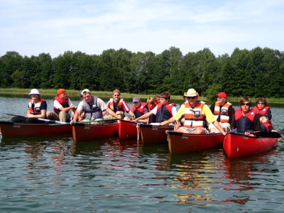 20 Jugendliche ab 14 konnten eine Woche lang an der Mecklenburgischen Seenplatte Gemeinschaft erfahren und Glauben erleben. Neben dem gemeinsamen Paddeln auf den Seen und Kanälen gab es auch eine Kanuolympiade, wo sich die Teilnehmer in Disziplinen wie Kanu-Tauziehen und Kanu-Tausch messen konnten. Die Abende klangen dann meistens mit weiteren sportlichen Aktivitäten wie Fußball oder Beach-Volleyball aus.