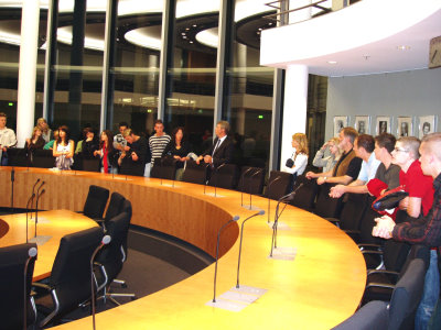 Marienenheide/Berlin - Zu Gast beim oberbergischen Bundestagsabgeordneten Klaus-Peter Flosbach in Berlin war die Stufe 13 der Gesamtschule Marienheide. Flosbach zeigte den Schülern seine „Klassenzimmer“, die Ausschuss- und Fraktionssäle im Bundestag…