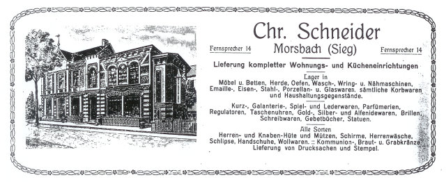 Morsbach - Kuriose Entdeckungen machte Christian Schneider, Inhaber des Möbelhauses an der Bahnhofstraße, bei den Vorbereitungen zur großen Jubiläumsfeier. In alten Unterlagen fand er unter anderem skurrile Annoncen sowie Hinweise auf Schaufenster zum Erdgeschoss, die nur von oben einzusehen waren…