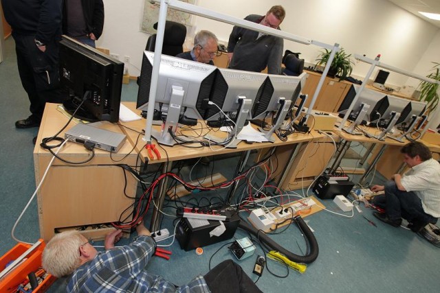 Faxanlagen und Internet verbinden mit übergeordneten Behörden wie beispielsweise der Polizei, der Bezirksregierung oder dem Innenministerium für besondere Großschadenslagen. Die Kreisleitstelle soll für die Dauer von drei Monaten im Notfallzentrum bleiben. In dieser Zeit werden die Räumlichkeiten der Leitstelle technisch und räumlich wieder auf den neusten Stand gebracht, dann findet der Rückumzug statt. (red.-25.04.2012 22:05)