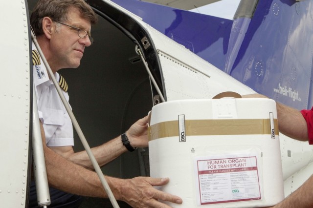 | Der Transport von Spenderorganen muss schnell, äußerst sorgfältig und medizinisch einwandfrei geschehen. Die Funktion des Transplantates und damit das Überleben des Organempfängers hängen unmittelbar davon ab. Einige Organe lassen sich nur für kurze Zeit konservieren - es kommt auf jede Minute an. Die DSO koordiniert diese anspruchsvolle Logistik und stellt den reibungslosen Ablauf sicher. (Foto: DSO / Paul Bischoff) |