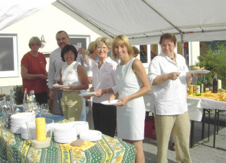 "Dank der Spende der Rotarier können auch unsere Bewohner an dem Fest teilnehmen", freute sich Barbara Schäfer, die Leiterin der im Hospiz tätigen ambulanten Malteser-Hospizgruppe. Bei einer Kunstausstellung hatten die Rotarier 30.000 Euro für das Hospiz gesammelt. Davon wurden unter anderem fahrbare Spezial-Stühle für die Bewohner gekauft, mit denen sie nun zu dem Grillfest vor der Einrichtung gebracht werden konnten.