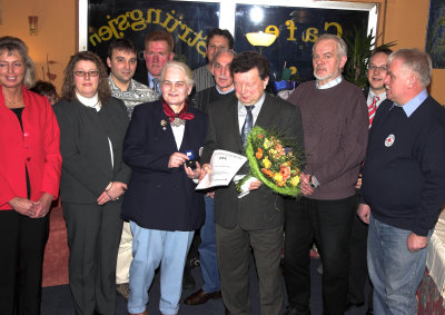 Für 25 Blutspenden wurden Erhard Schlatter, Lutz Buech, Martina Crisci, Ursula Köster, Eckhard Werner und für 50 Spenden Roswitha Kirstein, Helmut Dresbach sowie Manuel Melo geehrt. Die Ehrennadel für 75 Blutspenden erhielten Hans Georg Schmitz und Ernst Otto Pflitsch. Eine besondere Freude war es für alle, Albert Stromsky für 125 geleistete Blutspenden auszuzeichnen. www.drk-waldbroel.de (oh-6.2.2006 13:08)