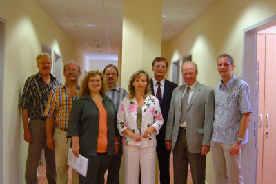| "Glückliche Gesichter bei der offiziellen Übergabe der ARGE-Büros im neuen Standort Reichshof" (Manfred Heine, Abteilungsleiter Hochbau, Bauverwaltungsleiter Thomas Roos, Silvia Schmidt (BGW Reichshof), Martin Hombach, Abteilungsleiter Jugend und Sozialses, Heike Herzog, Teamleiterin der ARGE Standorte Waldbröl, Morsbach und Reichshof, Frank Bansen, stellvertretender Geschäftsführer der ARGE Oberberg, Bürgermeister Gregor Rolland, Architekt Jörg Schneider) |