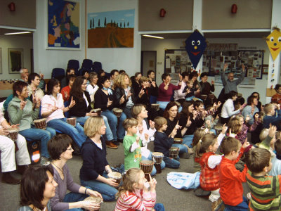 Jeweils drei Klassen lernten spielerisch afrikanische Kultur kennen und trommelten begeistert mit. Beim anschließenden Mitmach-Konzert waren auch die Eltern und Lehrer eingeladen, die sich mit einem Kanon bedankten: „Viele kleine Leute, die viele kleine Schritte tun, können das Gesicht der Welt verändern.“ (oh-21.11.2006 21:07)