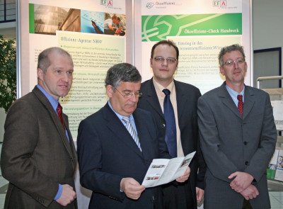 Unter dem Titel „Ökoeffizienz-Check Handwerk“ präsentierten Landrat Hagen Jobi, Dr. Peter Jahns, Leiter der Effizienz-Agentur NRW, und Kai Uffelmann, Geschäftsführer der Kreishandwerkerschaft, die informativen Tafeln im Foyer des Kreishauses in Gummersbach.