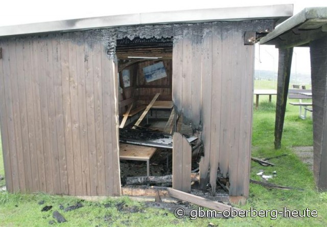 Seit Monaten häufen sich die Fälle von Brandstiftungen in der Gemeinde Reichshof. Bisher ist es immer bei Sachschäden geblieben, doch heute sind dem Feuerteufel Jungvögel zum Opfer gefallen, die noch in ihrem Nest hockten. Die Modellsportfreunde hatten unterhalb des Dachs der Schutzhütte ein Schlupfloch für den Nestbau ausgesägt. Durch die enorme Hitzeentwicklung verendeten die Tiere bei dem heutigen Brand qualvoll. Eines der Tiere lag unterhalb der geschmolzenen Dachrinne im Brandschutt.