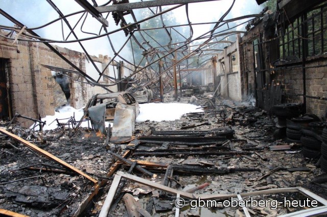 Die Polizei hat die Ermittlungen aufgenommen und prüft auch einen Hinweis, der auf Brandstiftung führen könnte. So wollen Anwohner kurz vor dem Brand ein Auto gehört haben, das sich mit hoher Geschwindigkeit von dem Hallenkomplex entfernt hat. (Gina Barth-Muth-19.09.2013 09:41)