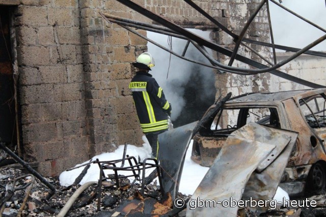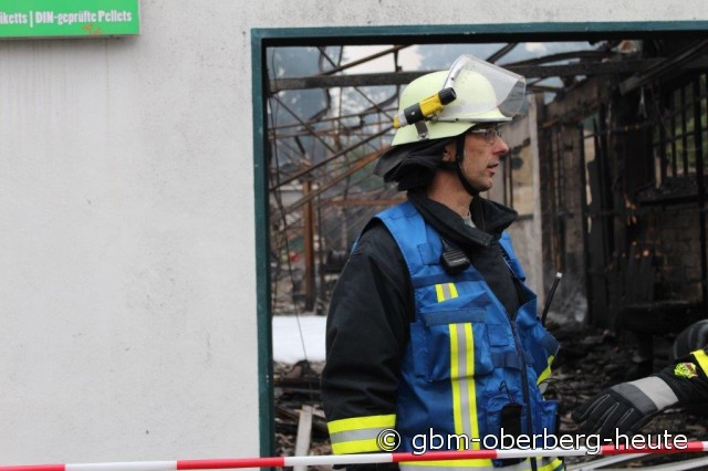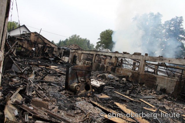 Der starke Funkenflug hatte ein hinter hohen Bäumen stehendes angrenzendes Wohnhaus bedroht. "Wir haben uns auf den Schutz dieses Hauses konzentriert", berichtet Müller. Mit Erfolg. Während der Hallenkomplex bis auf die Grundmauern niederbrannte, entstand an dem Wohnhaus keinerlei Schaden. Auch die im Hallentrakt untergebebrachten Gasflaschen konnten in Sicherheit gebracht werden. Sie seien vorbildlich gelagert gewesen, berichtet die Feuerwehr.