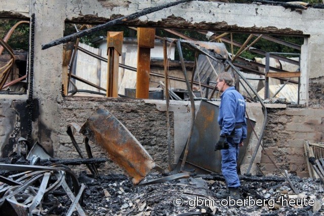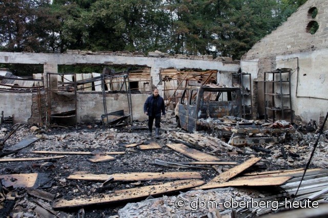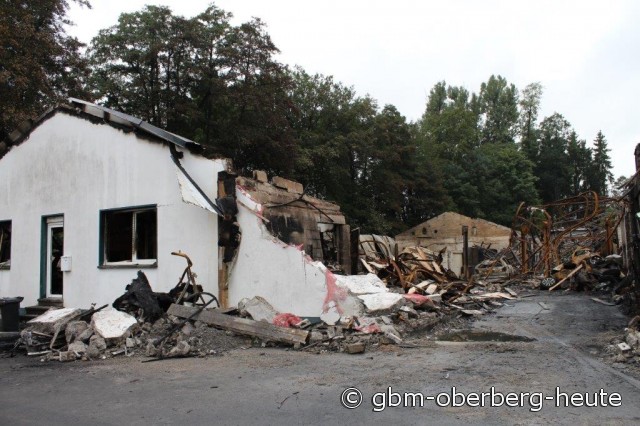 Der Gesamtschaden, den das Feuer in dem Hallenbereich angerichtet hat, liegt auch nach Einschätzung der Polizei im Millionenbereich. Statt umfangreicher Renovierungsarbeiten steht nun ein Abriss bevor. Alle Vorbereitungen für ein neues Dach in einem Teilbereich des Hallentrakts seien bereits getroffen worden und hätten nur wenige Tage vor der Umsetzung gestanden, berichtet Müller. Anschließend sollte der Rest der Gebäude ein neues Dach bekommen. Gestern rückte die Feuerwehr erneut zu Nachlöscharbeiten an die Firmenhallen, von denen nur Ruinen übriggeblieben sind. (Gina Barth-Muth-21.09.2013 09:04)