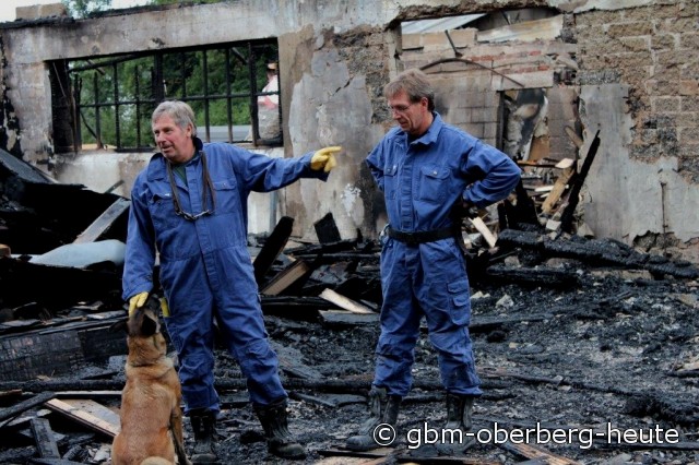 Spürhunde suchen nach Brandbeschleuniger