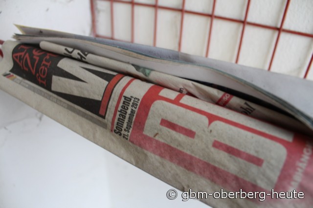 | Im Brieffach des verwaisten Hauses liegt eine Zeitung vom 21. September 2013 |