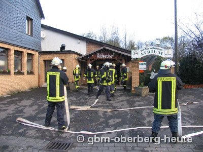 Wildbergerhütte - Sonntagmorgen 8:00 Uhr. Feuerwehrleute stürmen in die Disco „Wildwechsel“. Wasserfontänen prasseln auf zwei benachbarte Häuser. In der Disko kann man die Hand vor Augen nicht sehen. 12 Personen gelten als vermisst. Entwarnung: Alles nur eine Übung, auch zur Sicherheit der Gäste…