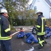 Gemeindebrandinspektor und Leiter der Reichshofer Feuerwehr, Hans-Uwe Koch, erklärt das gestellte Szenario. „In der Diskothek ist ein Barnd ausgebrochen. Zwölf Personen sind noch im Gebäude, zwei benachbarte Häuser haben ebenfalls Feuer gefangen.“ Drei Personen gelten zu diesem Zeitpunkt noch als vermisst, werden aber kurz darauf von den Feuerwehmännern aus Wildbergerhütte, Nosbach und Odenspiel quietschfidel auf Tragen ins Freie gebracht. Sie wurden von den Kameraden gefunden, obwohl man - wie auch bei den zuvor geborgenen „Opfern“ durch den künstlichen Nebel die Hand vor Augen nicht sehen konnte.