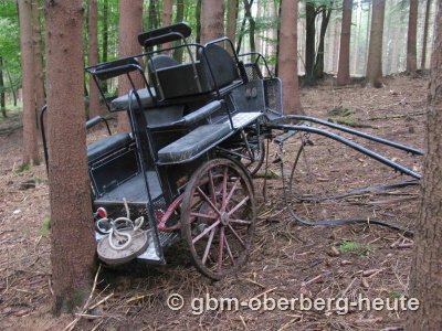 Führerlos geriet das Pferd in Panik, rannte geradeaus in ein abschüssiges Waldstück, riss sich von der Kutsche los, die sich an einem Baum verkeilt hatte und raste durch den Wald, über die viel befahrene L 94 in Richtung Heimat.