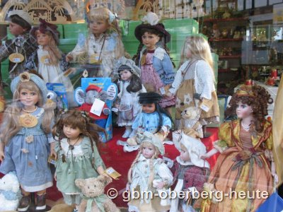 In der Verkaufsaustellung im Quelle-Shop sind derzeit Puppen in allen Größen, zum Preis von 14,99 € bis 169 €, ausgestellt.,