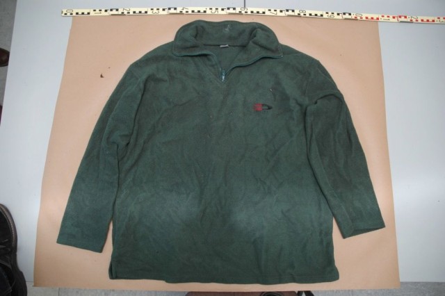 Es handelt sich dabei um einen grünen Fliespullover mit Reißverschluss, Größe XXL, mit Emblem auf der linken Brust, darunter die Aufschrift "Sport"