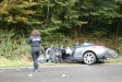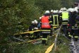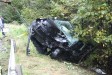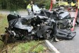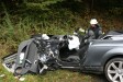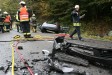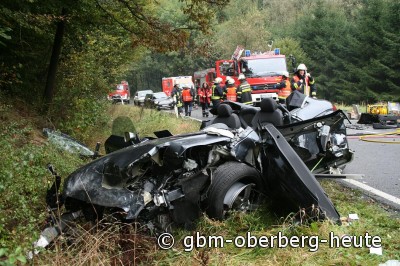 Der 35-jährige Fahrer aus Waldbröl war mit seinem Audi-TT von Heckelsiefen in Richtung Oberbierenbach unterwegs. In einer lang gezogenen Rechtskurve kam er auf der regennassen Straße auf die Gegenfahrbahn und prallte dort mit der 23-jährigen Fahrerin eines VW-Golf zusammen. Der Golf drehte sich nach dem Zusammenprall um die eigene Achse, wurde über die Leitplanke katapultiert und kippte anschließend eine zehn Meter tiefe Böschung hinunter. Auf halber Höhe landete das Fahrzeug an einer Baumgruppe. Wrackteile des Audi-TT wurden teils 50 Meter weit geschleudert.