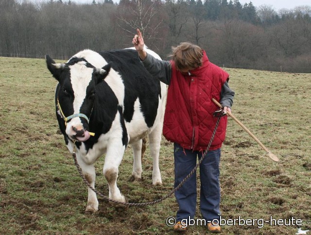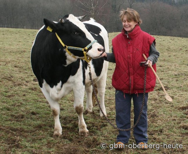 Was dabei herauskommt, wenn man sich so wie Ines Wackwitz ums Vieh kümmert, davon haben schon verschiedene Fernsehsender „Wind bekommen“. Erst vergangene Woche war das ungleiche Gespann in WDR Bonn zu sehen. Jetzt hat sich das ZDF angekündigt und auch weitere Sender signalisieren Interesse an der dressierten Kuh und ihrer Trainerin, die ihre dicke Freundin stets nur mit einem großen Holzlöffel dirigiert. Wenn eine Nummer einmal nicht klappt, zuckt Ines Wackwitz die Schultern und zeigt Humor. Beobachter solcher Szenen dürften hin- und hergerissen sein, wer denn nun von den beiden am meisten lacht: „Frau Müller oder „Opa Heinrich“?